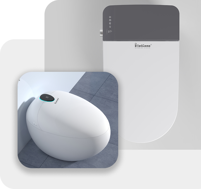 Modern and Sleek Design: At BioGiene, technology meets elegance. Our electric toilets are crafted to fit sleek modern bathroom interiors. The meticulous space-saving design ensures your bathroom looks spacious and feels safer to move around. Intuitive control panels and LED night lights bring aesthetic opulence and convenience.